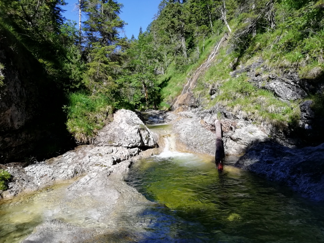 Zuvor ging es noch zu den eindrucksvollen Gumpen am Ende des Tales. Ganz hartgesottene Zeitgenossen trauten sich sogar ein kurzes, erfrischendes Bad in dem saukalten Wasser zu!!