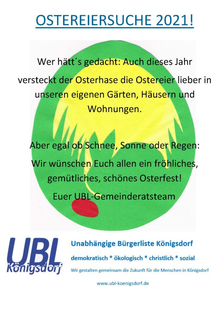 UBL-Ostereiersuche 2021 muss leider entfallen