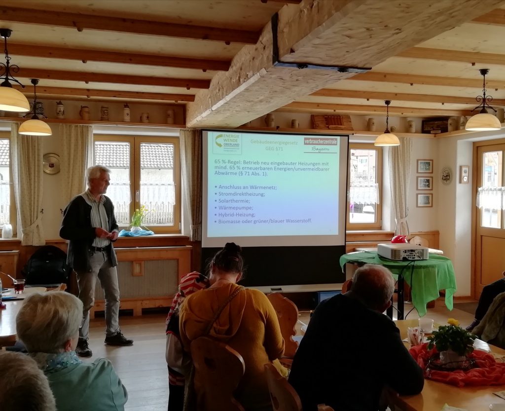 Referent Andreas Scharli, Energiemanager bei der Energiewende Oberland, erläuterte das neue Gebäudeenergiegesetz im Trachtenheim Königsdorf