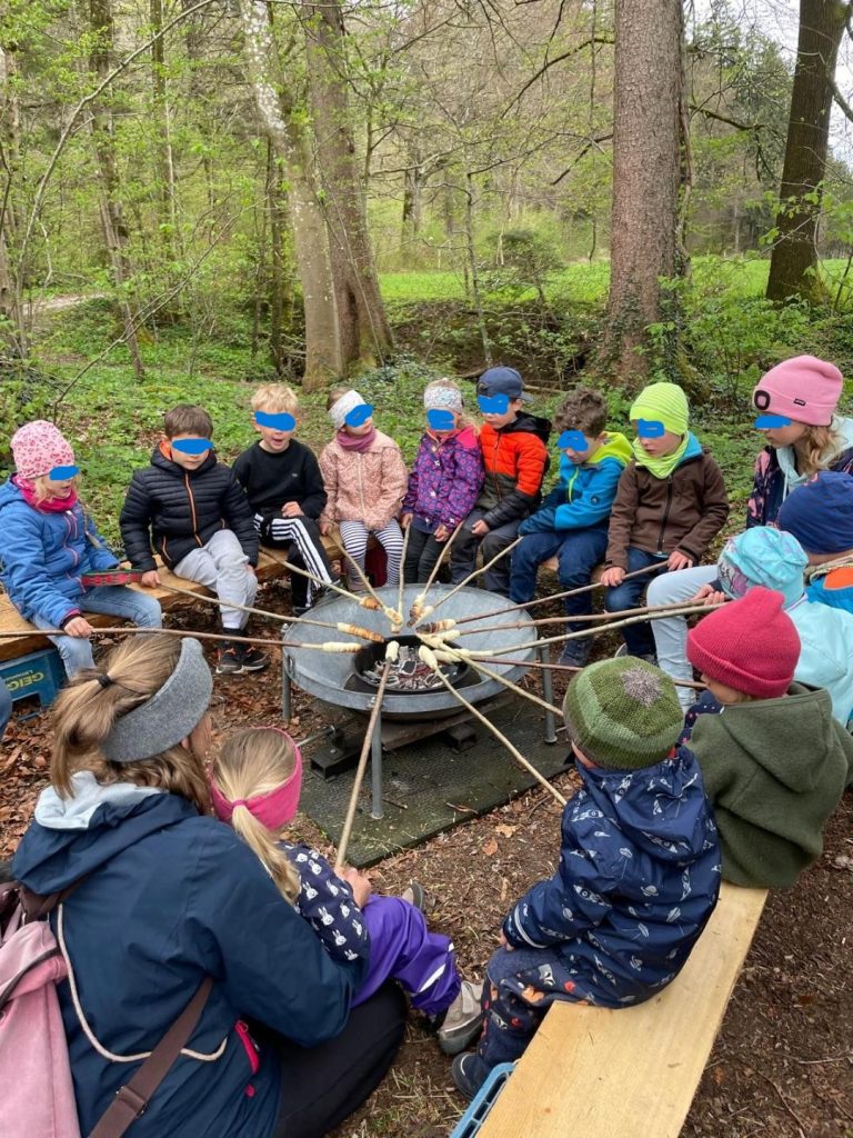 Die Stimmung war blendend und nach einem gemeinsam gezählten Countdown stürmte der ganze Pulk begeistert in den Wald. Während der Suche stärkten sich die Eltern bei Getränken, Wienern, Kaffee, Kuchen und dem ein oder anderen Osterei. Nach den erfolgreichen Streifzügen der Kleinen in dem abgegrenzten, überschaubaren Waldareal war aber noch lange nicht Schluss. Die Kinder konnten sich weiter vergnügen. Ob beim traditionellen „Oarscheibn“, beim eigenhändigen Stockbrotbacken über dem Kohlefeuer, am Basteltisch für die ganz kreativen Geister oder auch einfach beim Spielen am Ufer des nahegelegenen kleinen Baches.